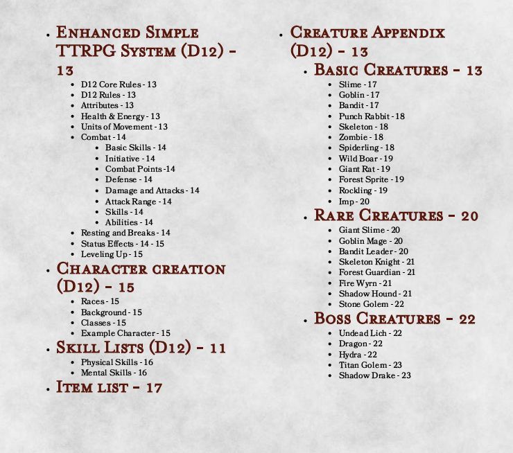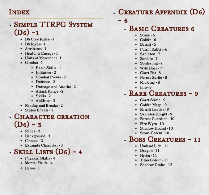 In order to download this Simple TTRPG System you must purchase it at or above the minimum price of $2 USD. You will get access to the following files:
